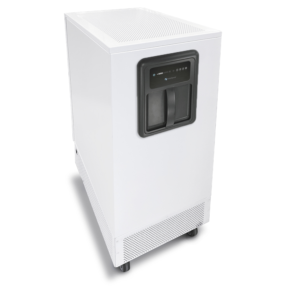 • 12-gauge aluminum construction with butterfly latch back door for easy access • High-memory sponge neoprene door gaskets to ensure door to filter seal • Aluminum filter track design for 2” standard prefilter and a track for High Energy Grid Frame • A polypropylene fin seal on the main filter track to eliminate filter air bypass • Designed for continuous operation • Operates at 120 V/220 V • Optional V-bank VOC Filter (Adsorbent Blend) Hydrated Photo • Catalytic Oxidation (HPCO) Odor-TVOC Cartridge • Delivers high CFM with low energy consumption • Mobile Design – built in 3.5” safety lock swivel casters, full width handle for easy movement • Multiple Fan Speeds – four fan speeds for ease of control • Independent Air flow/Distribution Control – to facilitate placement anywhere in the space • Patented V-Bank Filter – increases surface area and provides higher dust loading capacity • Ease of Maintenance – quick release filter access from the back side of the unit • Designed and engineered in America